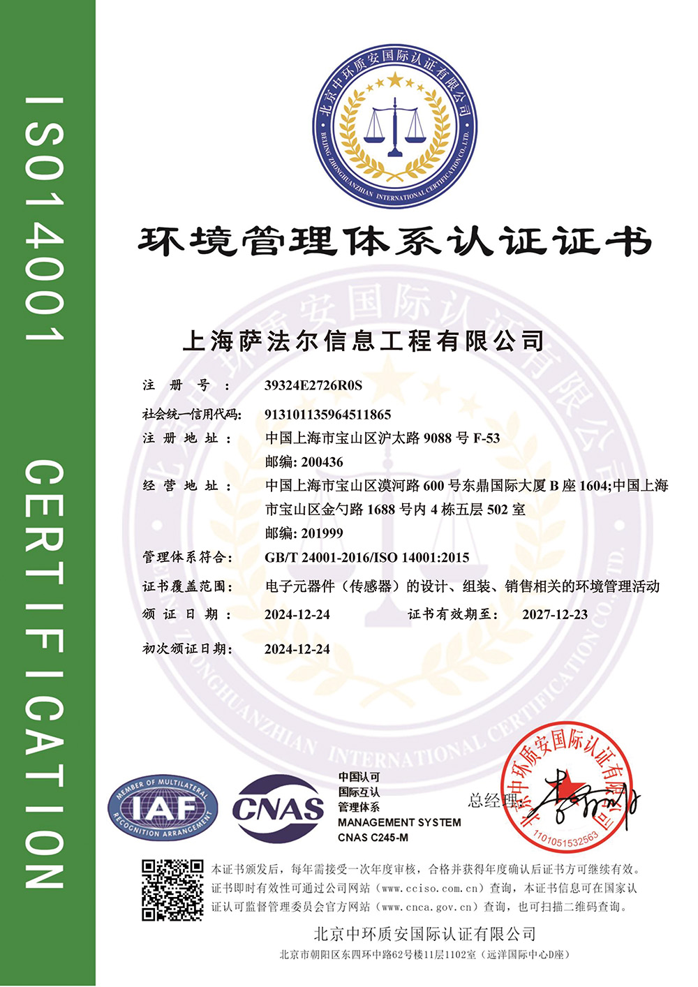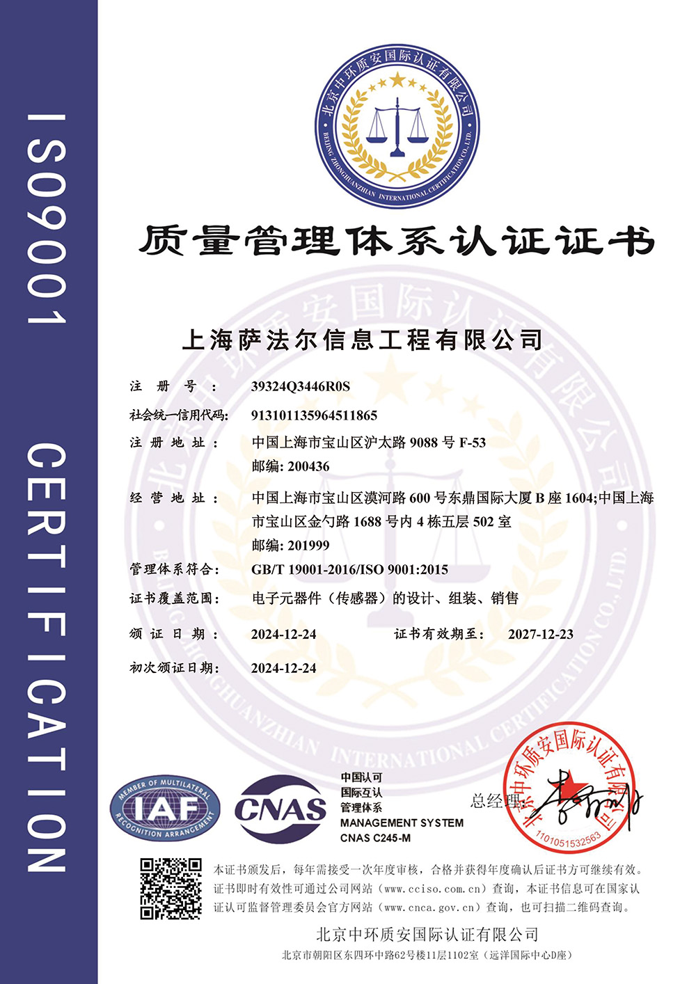 上海萨法尔信息工程有限公司(原上海萨法尔机电科技有限公司)是一家专业从事自动化传感器测控技术的科技企业,企业专注于自动化测控及其传感器元器件的研发、生产和销售,公司通过了GB/T19001-2016质量体系、GB/T24001-2016环境体系、GB/T45001-2020安全体系等认证,并以自动化仪器仪表领域的高新技术研发为主导,与国内众多著名院校、科研院校、知名企业保持着紧密合作关系。目前公司能够为用户提供自主品牌全系列磁致伸缩位移(液位)传感器,压力变送器,位移传感器、温度传感器,流量传感器、红外测温仪等传感器和仪表。