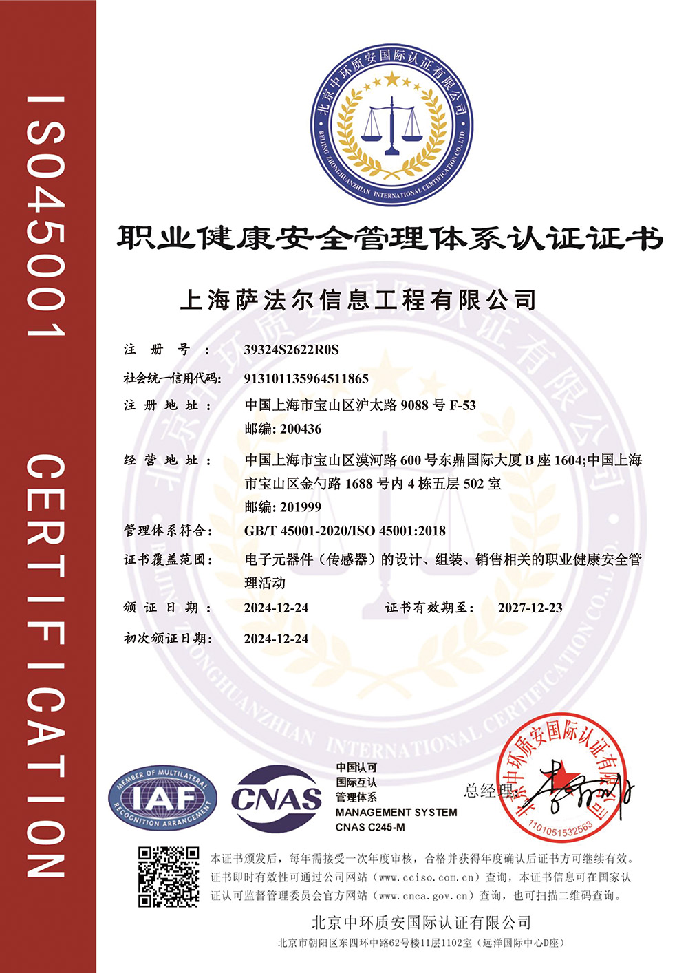 Shanghai Safaer Information Engineering Co., Ltd. (formerly known as Shanghai Safaer Electromechanical Technology Co., Ltd.) is a technology enterprise specializing in automation sensor measurement and control technology. The enterprise focuses on the research and development, production, and sales of automation measurement and control and its sensor components. The company has passed certifications such as GB/T19001-2016 quality system, GB/T24001-2016 environmental system, GB/T45001-2020 safety system, and is led by high-tech research and development in the field of automation instruments and meters. It maintains close cooperative relationships with many well-known universities, research institutions, and well-known enterprises in China. At present, the company can provide users with a full range of self branded magnetostrictive displacement (liquid level) sensors, pressure transmitters, displacement sensors, temperature sensors, flow sensors, infrared thermometers and other sensors and instruments.